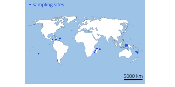 - Assemblages spatiaux et diversité régionale : L’étude a confirmé les gradients connus de biodiversité (par exemple, le Triangle de Corail comme région la plus riche), tout en identifiant une forte différenciation régionale et un renouvellement localisé de la biodiversité.